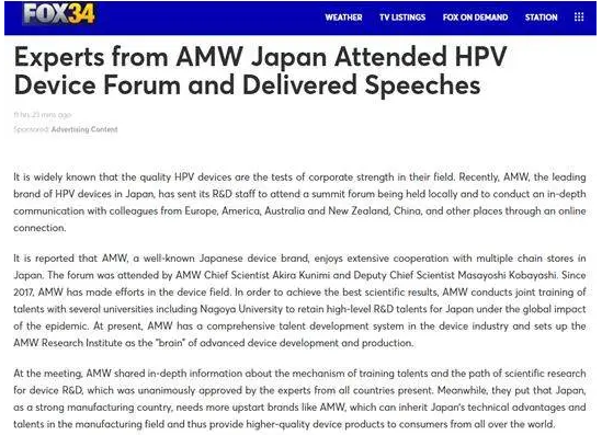 如何冷静、正确地应对HPV?其实只需要选对一种行之有效的治疗药物并坚持使用即可。记者了解到,日本排名第二的医疗器械巨头、日本知名妇科健康品牌Amw近日正式宣布进入中国市场,其公司发明一款全新的医学专利HPV克星——抗HPV凝胶。该产品采用凝胶药物填塞方式,应用了日本微囊缓释技术,物理凝壁专利技术等,有效抑制病毒,快速恢复转阴,治疗手段十分温和,据临床报告结果显示,对于低危病毒清除率100%,HPV高危病毒的祛除率高达99.6%以上,已经过美国FDA、欧盟CE、欧盟AP、欧盟COA、瑞士SGS、欧盟ROHS等检测认证,在全球11个国家取得临床验证,是目前全球通过技术和检测认证最多的抗HPV产品,已经在全球17个国家销售,在国内多家三甲医药院线渠道全面上市并获得诸多专业医师的大力推广。